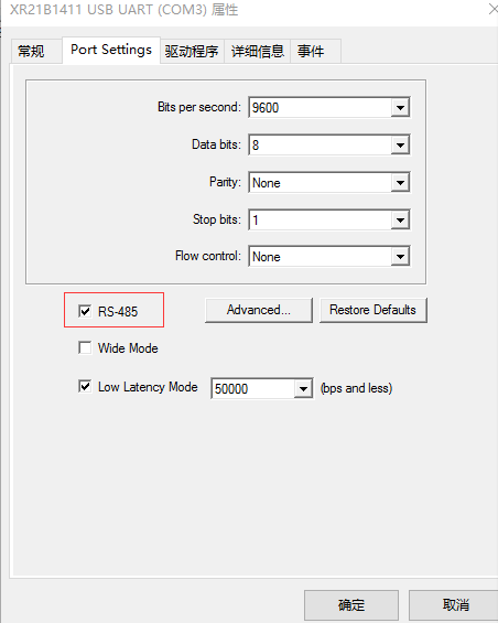 如果选择RS422/485模式请确认端口属性里RS-485勾选上。