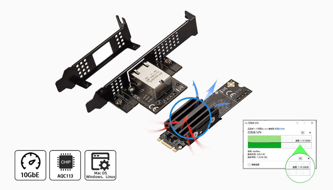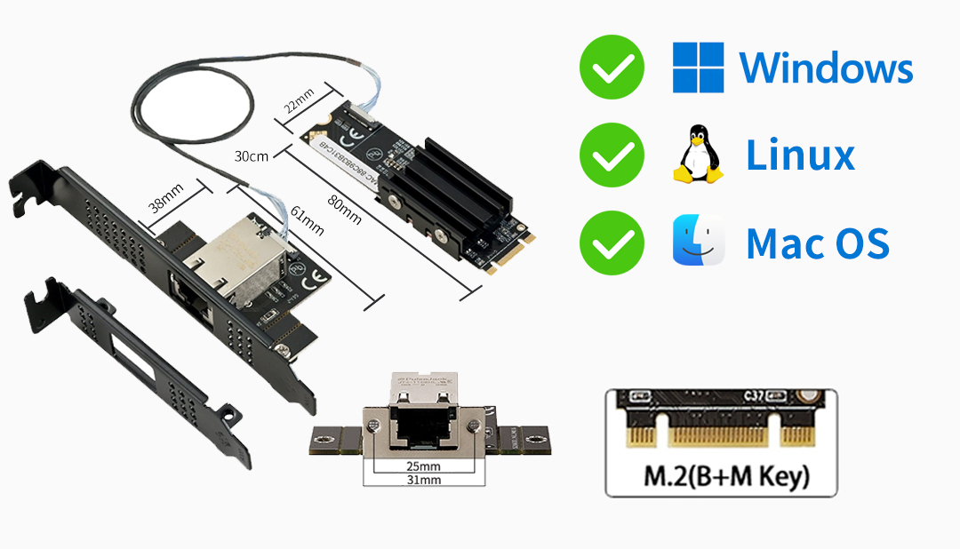 这款M.2 B+M Key 10GbE网卡拥有广泛的兼容性,能够适配大多数常见的M.2插槽,瞬间将您的NAS系统转变为一台高速网络巨兽 。想象一下,从此您可以: