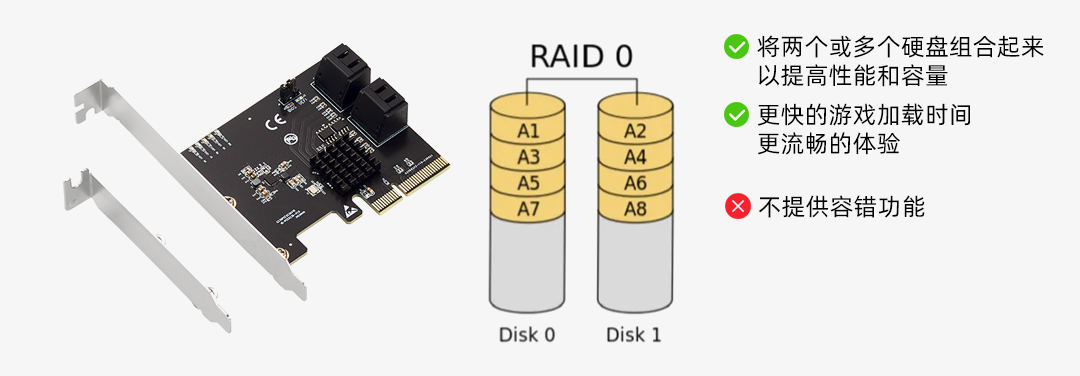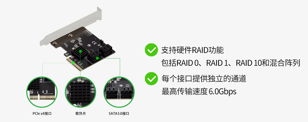 支持RAID级别: RAID 0, RAID 1, RAID 10, JBOD