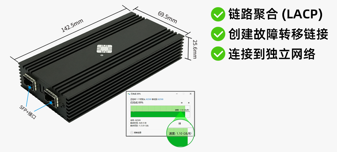 双端口设计带来了指数级增长的应用可能性。您可以同时连接到万兆交换机和高速NAS,或者通过链路聚合(Link Aggregation)实现高达20Gbps的恐怖带宽。甚至,它还能作为便携式网桥,灵活连接两个不同的网络区段。