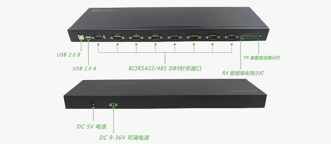 正是在这种背景下,USB 8口串口转换器 成为了不可或缺的工具。它是一款单一、坚固的设备,完美地弥合了技术鸿沟,能将您主机上的一个USB端口,转换为八个独立的串行通信通道。作为一款高密度的 USB转多路RS485/RS422串口转换器,它彻底消除了由多个适配器带来的混乱和不稳定性,为管理您的整个硬件阵列提供了一个简洁、可上架且可扩展的解决方案。